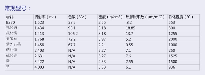 各種光學(xué)棱鏡/光學(xué)窗口/UV和IR窗口及透鏡、低溫實(shí)驗(yàn)的觀察口,在航海/航天/航空用高